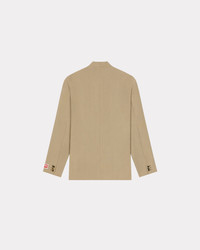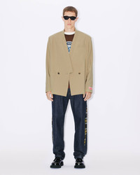Nigo revisits Kimono shape, an "East meets West" key pillar of the House, that Kenzo Takada himself played within KENZO collections. This suit jacket perfectly symbolises this East meeting West. Its shape is inspired by the traditional Japanese kimono. It is easy to wear and features a V neck for extra originality. Suit kimono jacket in virgin wool. Long sleeves. V neck. KENZO Paris label on one cuff. One breast pocket. One patch pocket at the side. Two inside pockets. Semi-lined in felt. Lined collar. Double-breasted front fastening with two buttons. Product Reference: FD65VE1309GE.13 SIZE & FIT Length at back: 78 cm. The model is 185 cm tall and wears a size M. COMPOSITION & CARE Made in Romania 100% virgin wool Do not bleach Mild professional dry-cleaning in: hydrocarbons Iron at low temperature Line drying in the shade Do not tumble dry Do not wash Do not wet-clean
