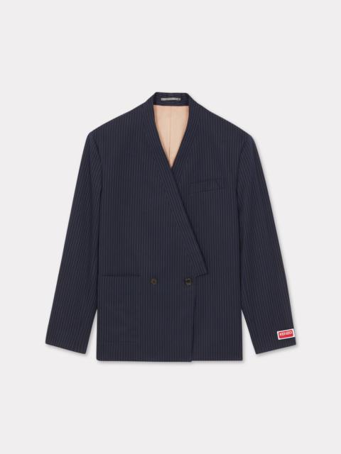 This kimono suit jacket offers a reference to KENZO's roots, inspired by the traditional Japanese kimono. It is one of the stand-out designs of the VESTIAIRE DE NIGO FOR KENZO collection. The 'KENZO Paris' logo features on a removable label on the cuff. Suit kimono jacket in virgin wool. Long sleeves. V neck. Removable 'KENZO Paris' label on cuff. One chest piped pocket. One side patch pocket. Two inside pockets. Semi-lined in felt. Double-breasted fastening. Shoulder pads. Product Reference: FE55VE1309GE.99 SIZE & FIT Length at back: 78 cm. The model is 185 cm tall and wears a size M. COMPOSITION & CARE Made in Romania 100% virgin wool Do not bleach Mild professional dry-cleaning in: hydrocarbons Iron at low temperature Line drying in the shade Do not tumble dry Do not wash Do not wet-clean