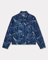 This denim jacket stands out thanks to its 'KENZO Chiku-Rin Camo' motif, inspired by the bamboo in the archives of the 1975 JUNGLE JAP collection. Made from high-quality Japanese Kaihara denim, this model features unique details such as two zipped chest pockets and a leather jacron with 'KENZO Paris' on the lower back. The soft fabric provides a casual finish to this key piece in Nigo's collection. Zipped trucker jacket. Kaihara Japanese denim. Two-way zip on the front. Two side pockets and one on the chest. Side adjusters at back. Kenzo Paris leather jacron on the back. Product Reference: FF55DV3106P1.DM SIZE & FIT Boxy fit. Back length at 67 cm. The model is 185 cm tall and is wearing size M. COMPOSITION & CARE Made in Portugal 100% cotton Do not bleach Mild professional dry-cleaning in: hydrocarbons Iron at low temperature Line drying in the shade Do not tumble dry 30°C very mild fine wash Very mild professional wet-cleaning