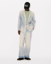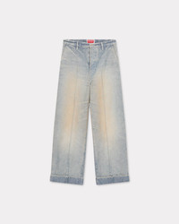 Large straight fit jeans. KENZO Paris jacron on the back. KENZO Paris buttons. Kuroki Japanese denim. Hem. Pleats on the front. Two side pockets. Two buttoned back pockets. SIZE & FIT The model is 185 cm tall and wears a size M. Leg length at 107 cm (+6cm turn up). COMPOSITION & CARE Made in Tunisia 100% cotton