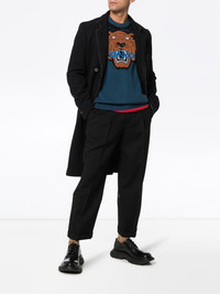 large tiger intarsia jumper Join the bold and vibrant print-centric journey of Japanese designer Kenzo Takada as he reinvents the house’s signature pop art-inspired motifs. This blue intarsia jumper from Kenzo features a ribbed crew neck, long sleeves, a ribbed hem and cuffs and a tiger design to the front with embroidered logo. Imported Composition Acrylic 37%, Polyamide 29%, Mohair 12%, Cotton 12%, Polyester 5%, Wool 5% SIZE & FIT Model measurements Height 6 ft 1 in(1.85 m) Bust/Chest 37.79 in(96 cm) Hips 37.4 in(95 cm) Waist 30.7 in(78 cm) Washing instructions Hand Wash