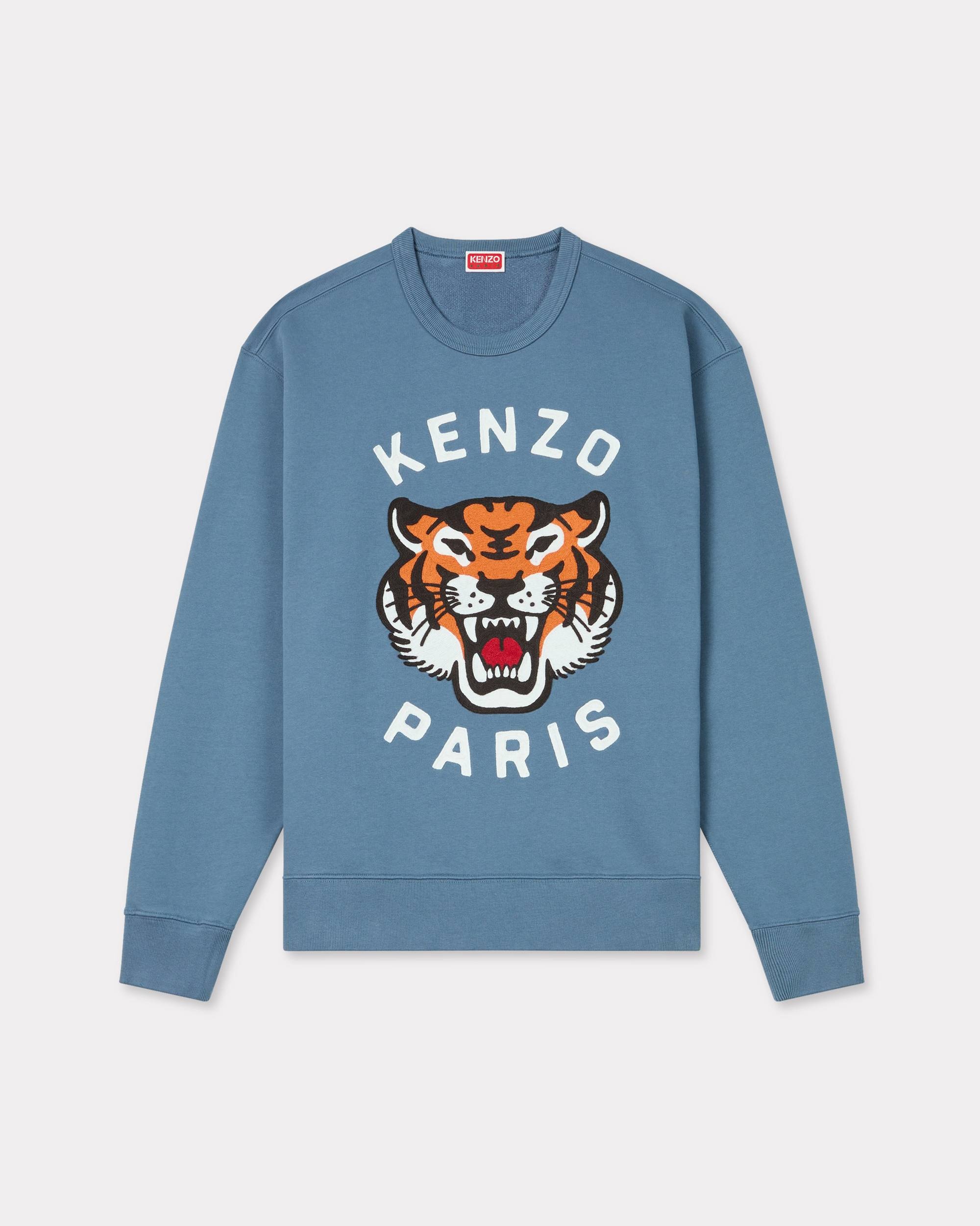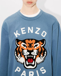 'KENZO Lucky Tiger' embroidered sweatshirt. Full rich chain stitch embroidery technic. Genderless. Light Soft Unbrushed Molleton. Product Reference: FE68SW1064MF.67 SIZE & FIT Classic fit. The female model is 175 cm tall and is wearing size S. The male model is 185 cm tall and is wearing size M. COMPOSITION & CARE Made in Portugal 100% cotton Do not bleach Do not dry-clean Iron at low temperature Flat drying Do not tumble dry Hand wash Very mild professional wet-cleaning