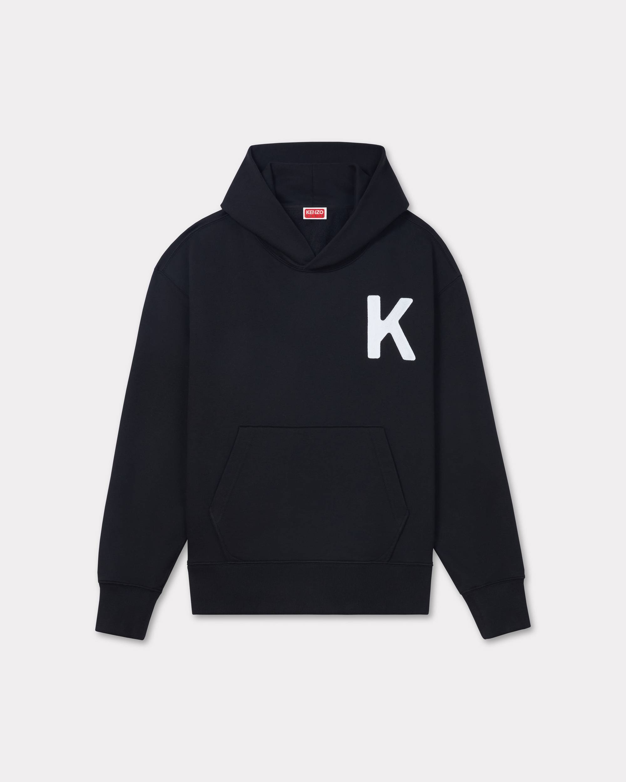 'KENZO Lucky Tiger' oversized hoodie. Light soft unbrushed molleton. Genderless. K letter embroidered at crest. Full rich chain stitch embroidery technic. Product Reference: FE58SW0114MF.99J SIZE & FIT Oversize fit. The female model is 175 cm tall and is wearing size S. The male model is 185 cm tall and is wearing size M. COMPOSITION & CARE Made in Portugal 100% cotton Do not bleach Do not dry-clean Iron at low temperature Flat drying Do not tumble dry Hand wash Very mild professional wet-cleaning