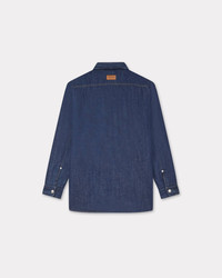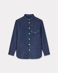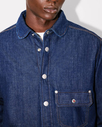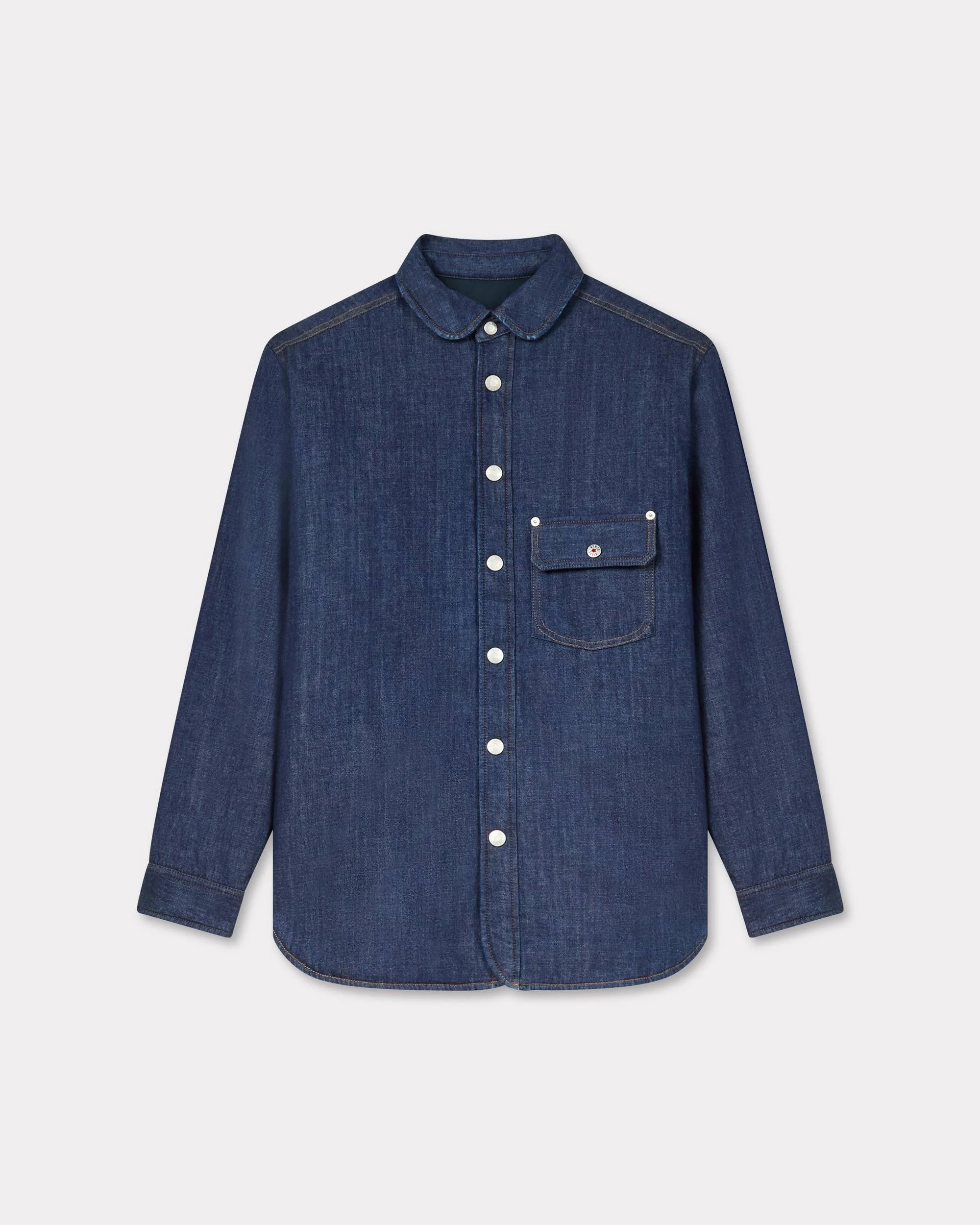 Padded overshirt. Rinse Denim. Kaihara Japanese denim. Lined. Club collar. 'KENZO Paris' leather jacron on the back neck. One chest pocket. 'Boke Flower' buttons & one colored on the chest pocket. Product Reference: FF65DC5066E1.DM SIZE & FIT The model is 185 cm tall and is wearing size M. Back length at 85,5 cm. Oversize fit. COMPOSITION & CARE Made in Portugal 100% cotton Do not tumble dry