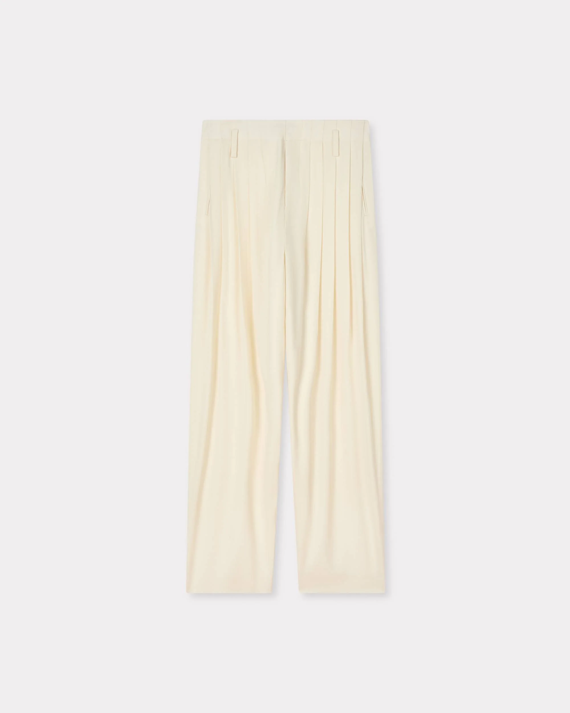 Pleated pants. Virgin wool. Lined. Two side pockets. Two back pockets. Nice detail with an embroidered heart on the fly. KENZO signature embroidery on the back pocket. Product Reference: FG55PA3849TF.03 SIZE & FIT The model is 185 cm tall and is wearing size 40. Relax fit. Leg length at 112 cm. This item is designed to be worn loose. Take your usual size. COMPOSITION & CARE Made in Romania 100% virgin wool Do not bleach Mild professional dry-cleaning in: hydrocarbons Iron at low temperature Line drying in the shade Do not tumble dry Do not wash Do not wet-clean