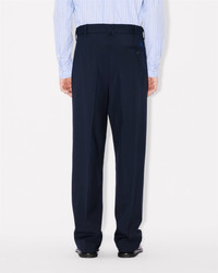 Pleated tailored pants. 'KENZO Paris' label on back pocket. Half-lined front. Two side pocket. One back pocket. Product Reference: FE65PA2149GE.79 SIZE & FIT Relax fit. Leg length at 112 cm. The model is 185 cm tall and is wearing size M. COMPOSITION & CARE Made in Romania 100% virgin wool Do not bleach Mild professional dry-cleaning in: hydrocarbons Iron at low temperature Line drying in the shade Do not tumble dry Do not wash Do not wet-clean