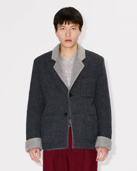 Reversible tailored jacket. Textured recycled polyester wool. Reversible side: hairy wool alpaca and mohair mix. Lined & reversible. Shoulder pads. One chest pocket & two front pockets on each version. 'KENZO Paris' label on the back neck. Product Reference: FF65VE1449TC.98 SIZE & FIT The male model is 185 cm tall and is wearing size M. Back length at 73 cm. Straight fit. COMPOSITION & CARE Made in Romania 48% polyester, 41% wool, 8% acrylic, 3% polyamide Do not bleach Mild professional dry-cleaning in: hydrocarbons Line drying in the shade Do not tumble dry Do not wash