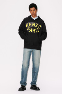This hoodie sweatshirt is enhanced with a KENZO Paris ‘Sailor’ patch on the front that takes its inspiration from naval pennants. The embroidered ‘KENZO Elephant’ patch on the back is inspired by Kenzo Takada’s favourite animal and Ivy League university jackets. This garment offers streetwear codes with its pouch pocket and hood. Fleece hoodie sweatshirt. Long sleeves. Hooded neckline. KENZO Paris ‘Sailor’ patch at front. Embroidered ‘KENZO Elephant’ patch at back. Kangaroo pocket. Ribbed finishes. COMPOSITION & CARE Made in Portugal 100% cotton