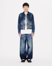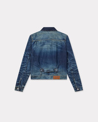 Slim pleated trucker in jacket. Stone bleach dirty denim. Kuroki Japanese denim. Two chest pockets & cinch buckle. 'KENZO Paris' leather jacron on the bottom back and 'KENZO Paris' buttons. Each piece will have different effects and will be unique. Product Reference: FF65DV3126I7.DY SIZE & FIT The male model is 185 cm tall and is wearing size M. Back length at 59 cm. Cropped slim fit. The fit of this product is cropped and slim. We recommend choosing one size larger than your usual size. COMPOSITION & CARE Made in Portugal 100% cotton