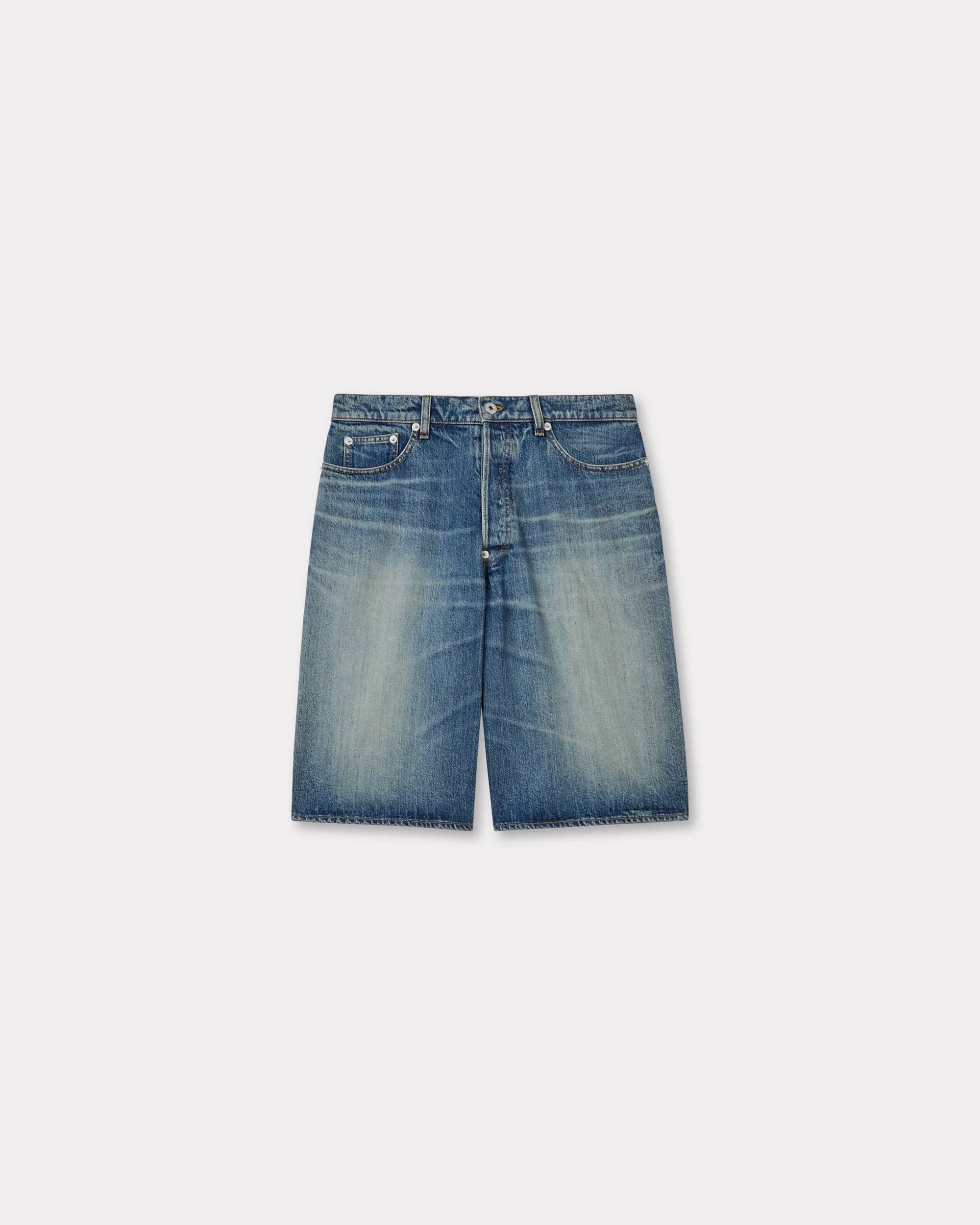 Straight short in japanese denim. Kuroki Japanese denim. Buttoned fly. Two front pockets. One ticket pocket. Two back pockets. Kenzo Paris leather jacron on the back. Product Reference: FF55DS3396I7.DS SIZE & FIT Leg length at 62 cm. The model is 185 cm tall and is wearing size M. COMPOSITION & CARE Made in Tunisia 100% cotton Do not bleach Mild professional dry-cleaning in: hydrocarbons Iron at low temperature Line drying in the shade Do not tumble dry 30°C very mild fine wash Very mild professional wet-cleaning