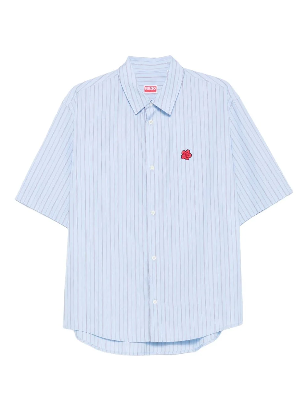 striped embroidered shirt Highlights - Light blue - Striped pattern - Short sleeves - Button fastening - Embroidered flower - Classic collar Imported Composition Cotton 100% SIZE & FIT Model measurements Height 6 ft 2 in(1.88 m) Bust/Chest 37.4 in(95 cm) Hips 38.58 in(98 cm) Waist 31.1 in(79 cm) Washing instructions Machine Wash
