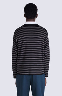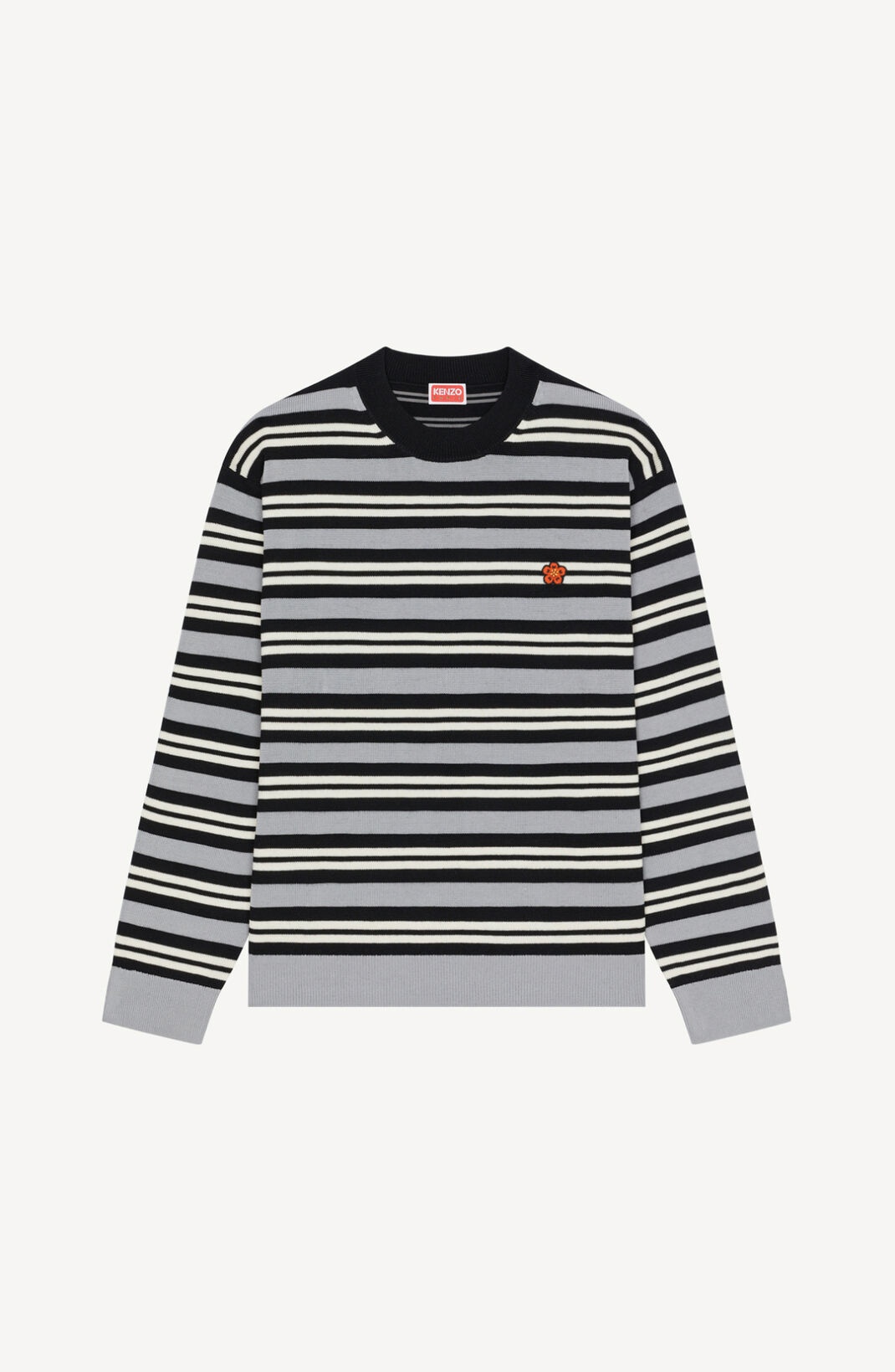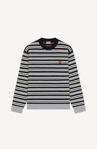 In this design, Nigo offers a bold, graphic take on the classic striped jumper. The front and back of the garment look like two different jumpers. The back of one complements the front of another, each showing off a different set of contrasting stripes. This very modern aesthetic is marked by a 'BOKE FLOWER' crest embroidered on the chest. Long-sleeved jumper. Round neck. Contrasting stripe motifs on front and back. 'BOKE FLOWER' crest embroidered on the chest. SIZE & FIT Comfortable fit. The model is 186 cm tall and wears a size M. COMPOSITION & CARE Made in Turkey 56% wool, 44% cotton