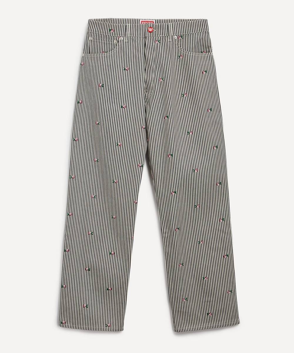 Editor's Notes Elevate your denim edit with the statement-making Rinse Striped Suisen jeans from Kenzo. Cut from sturdy cotton to a relaxed fit, this striped pair is detailed with ditsy rose embroidery all over. Features Striped jeans Rose embroidered detailing Relaxed fit Straight cut Cotton denim Cropped leg Five pocket design Buttoned zip fly Belt loops Rear pocket logo patch SIZE & FIT Model is 186cm/6'1"; Chest: 94cm; Waist: 78.5cm and wears size 32 Composition & Care 100% Cotton Machine wash About Kenzo Kenzo has been propelling innovative, multi-cultural designs into the sartorial sphere since 1970. Now owned by fashion group LVMH and under the creative direction of Humberto Leon and Carol Lim, today the brand's womenswear, menswear and accessories bring fresh energy to fashion on a global scale. Think East meets West, iconic print and of course the infamous Kenzo tiger.