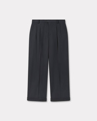 Tailored pants in mixed virgin wool. KENZO Paris label on back pocket. Qualitative construction with a half-lined front. Turn up cuff. Two side pocket. Two buttoned back pocket and one welt pocket. Product Reference: FF55PA3679RI.99 SIZE & FIT The model is 185 cm tall and is wearing a size M. Straight fit. Leg length at 108 cm. COMPOSITION & CARE Made in Romania 72% viscose, 28% virgin wool Do not bleach Mild professional dry-cleaning in: hydrocarbons Iron at low temperature Line drying in the shade Do not tumble dry Do not wash Do not wet-clean