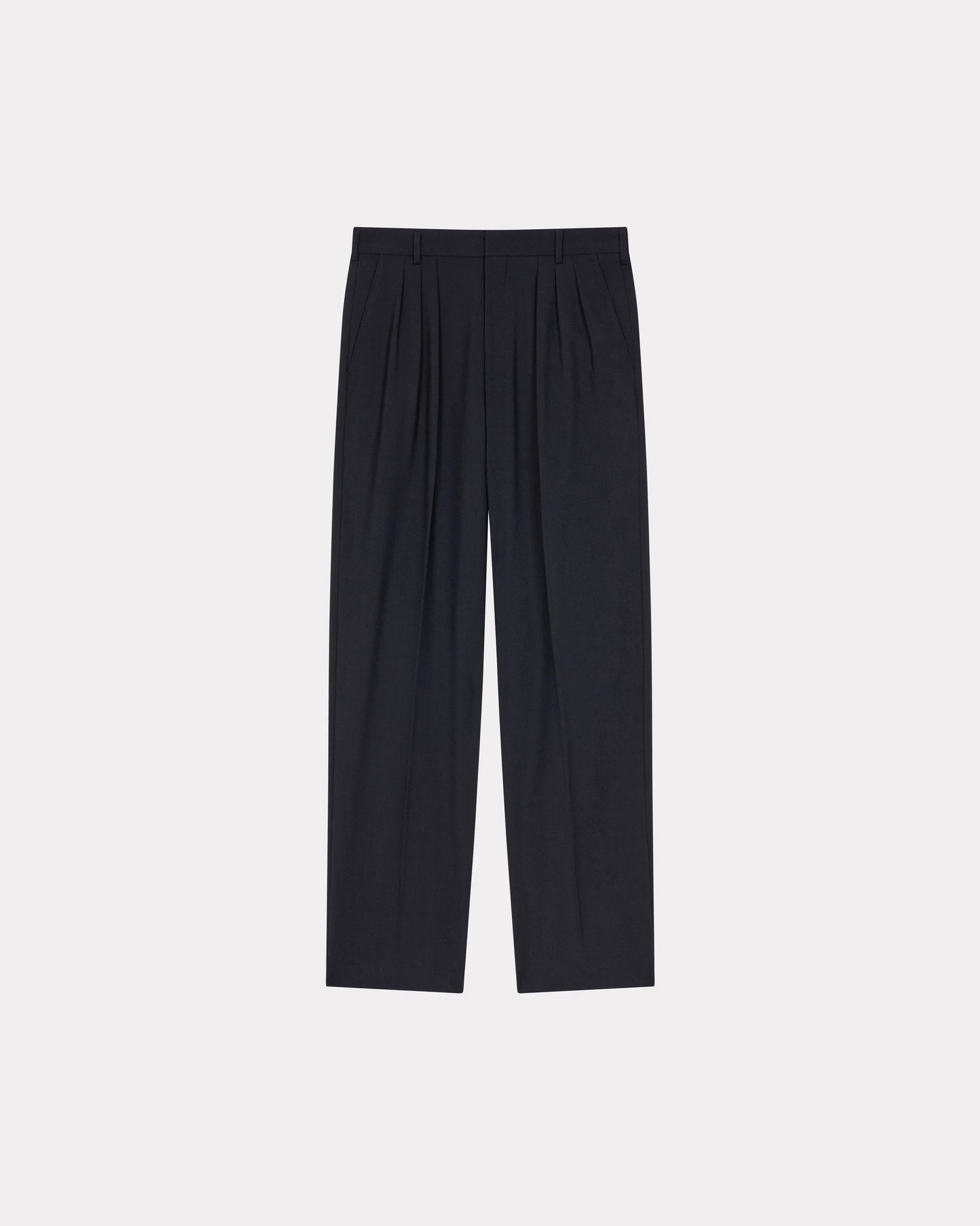 Crafted in the traditional art of Haute Couture with a retro touch dear to Nigo, these pleated tailored trousers offer a perfect fit. We love them for their unique smooth feel and meticulous construction, featuring a half-lining on the front. Pleated tailored wool trousers. KENZO Paris label on the back pocket. Two piped side pockets. One back pocket. Belt loops. Product Reference: FD65PA2149GE.77 SIZE & FIT Leg length: 111 cm. The model is 185 cm tall and wears a size M. COMPOSITION & CARE Made in Romania 100% virgin wool Do not bleach Mild professional dry-cleaning in: hydrocarbons Iron at low temperature Line drying in the shade Do not tumble dry Do not wash Do not wet-clean