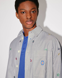 This striped shirt is enhanced by the 'KENZO Target' logo that takes its inspiration from pop art and the British rock group The Who. This piece offers a modern shape thanks to its oversize cut. Oversize poplin shirt. Long sleeves with button cuffs. Classic collar. All-over stripes with 'KENZO Target' print. Embroidered 'KENZO Target' logo on the chest. Patch pocket on the chest. Front button fastening. SIZE & FIT Oversize cut. Length at back: 83 cm. The model is 187 cm tall and wears a size M. COMPOSITION & CARE Made in Romania 100% cotton