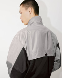 This windbreaker offers an authentic retro style inspired by the KENZO archives evoking the streetwear of the 80s. It features a geometric patchwork design creating the stripes of a tiger, the brand's iconic mascot. Nigo's 'BOKE FLOWER' is also featured in the form of a button on the back. Two-tone retro windbreaker. Long sleeves with buttoned cuffs. High collar with integral hood. Contrasting KENZO logo on the chest and back. 'BOKE FLOWER' button on the back. 2 side pockets. Elasticated cuffs and hem. Waterproof. Front zip fastening. SIZE & FIT Length at back: 70 cm. The model is 185 cm tall and wears a size M. COMPOSITION & CARE Made in China 100% polyester