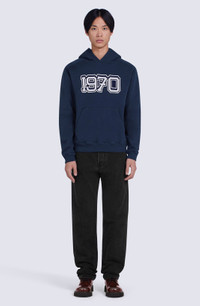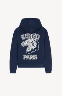 This vintage-inspired hooded sweatshirt is the perfect example of campus/sportswear style. Large versions of the iconic Tiger and the KENZO Paris logo appear on the back in contrasting chenille embroidery. Long-sleeved sweatshirt. Hood at the neckline. Chenille embroidery of '1970' on the front and the Tiger on the back. Kangaroo pocket. Ribbed finishes. SIZE & FIT Classic fit. COMPOSITION & CARE Made in Portugal 100% cotton