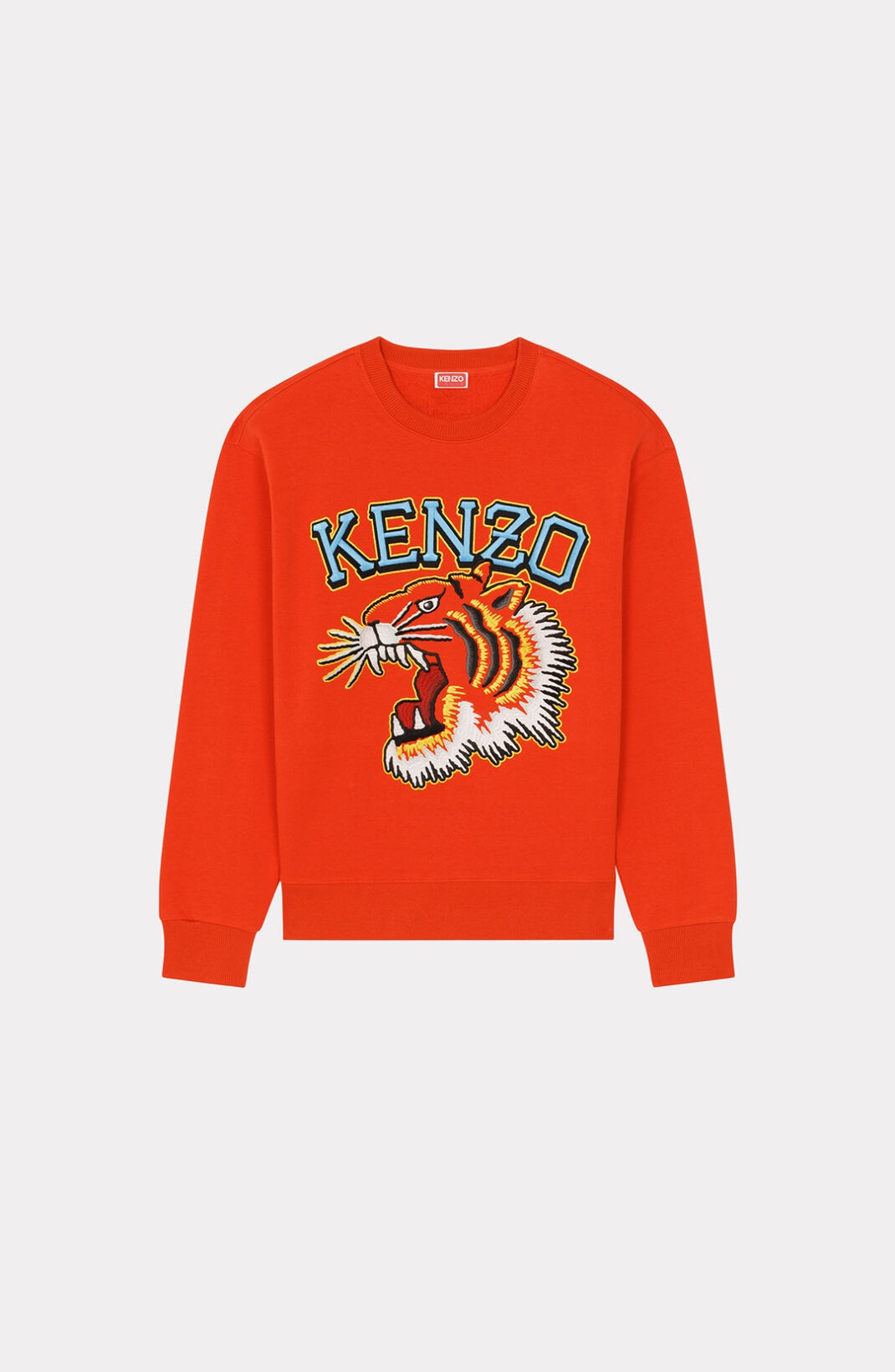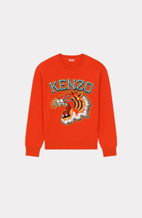 This 'Varsity Jungle' Tiger sweatshirt offers a fresh twist on the iconic feline, drawing inspiration from the logos of American university sports teams. The satin-thread embroidery adds an original touch. Long-sleeved sweatshirt. Round neck. 'Tiger Varsity' motif embroidered in satin on the front. KENZO Paris label on the back. Ribbed collar, cuffs and hem. SIZE & FIT Classic cut. COMPOSITION & CARE Made in Portugal 100% cotton