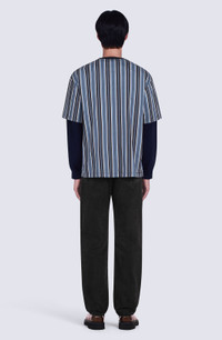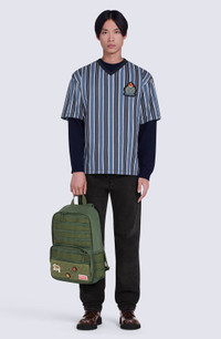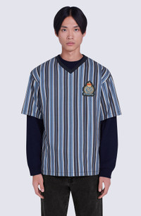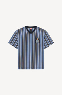 This oversize T-shirt combines the all-over stripe motif Kenzo Takada held so dear with the streetwear identity of artistic director Nigo. For this piece, the designer was inspired by the aesthetics of 1950s American college fashion. A 'Tiger Tail K', intertwined with a KENZO Paris signature in a coat of arms and topped with a crown, adds a modern touch. The thick jersey lends this oversize T-shirt vintage appeal. Short-sleeved oversize T-shirt. Ribbed V neck. All-over stripes. 'Tiger Tail K' crest embroidery on the front. SIZE & FIT Oversize fit. COMPOSITION & CARE Made in Portugal 100% cotton