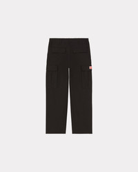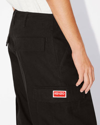These cargo trousers, a flagship design of the VESTIAIRE DE NIGO FOR KENZO collection, illustrate the artistic director's workwear vision. They feature a KENZO Paris label on the flap pocket and a button shaped like the iconic 'Boke Flower' on the front. This vintage-inspired design offers an easy-to-style streetwear silhouette. Streetwear cargo trousers. KENZO Paris label on the flap pocket. 'Boke Flower' on the front. Adjustable drawstrings at the waist and cuffs. Flap pockets with hidden buttons on the front and back. Product Reference: FE55PA2429DL.99 SIZE & FIT Leg length: 104 cm.Model is 185 cm tall and wears a size M. COMPOSITION & CARE Made in Tunisia 100% cotton Do not bleach Mild professional dry-cleaning in: hydrocarbons Iron at low temperature Line drying in the shade Do not tumble dry 30°C very mild fine wash Mild professional wet-cleaning