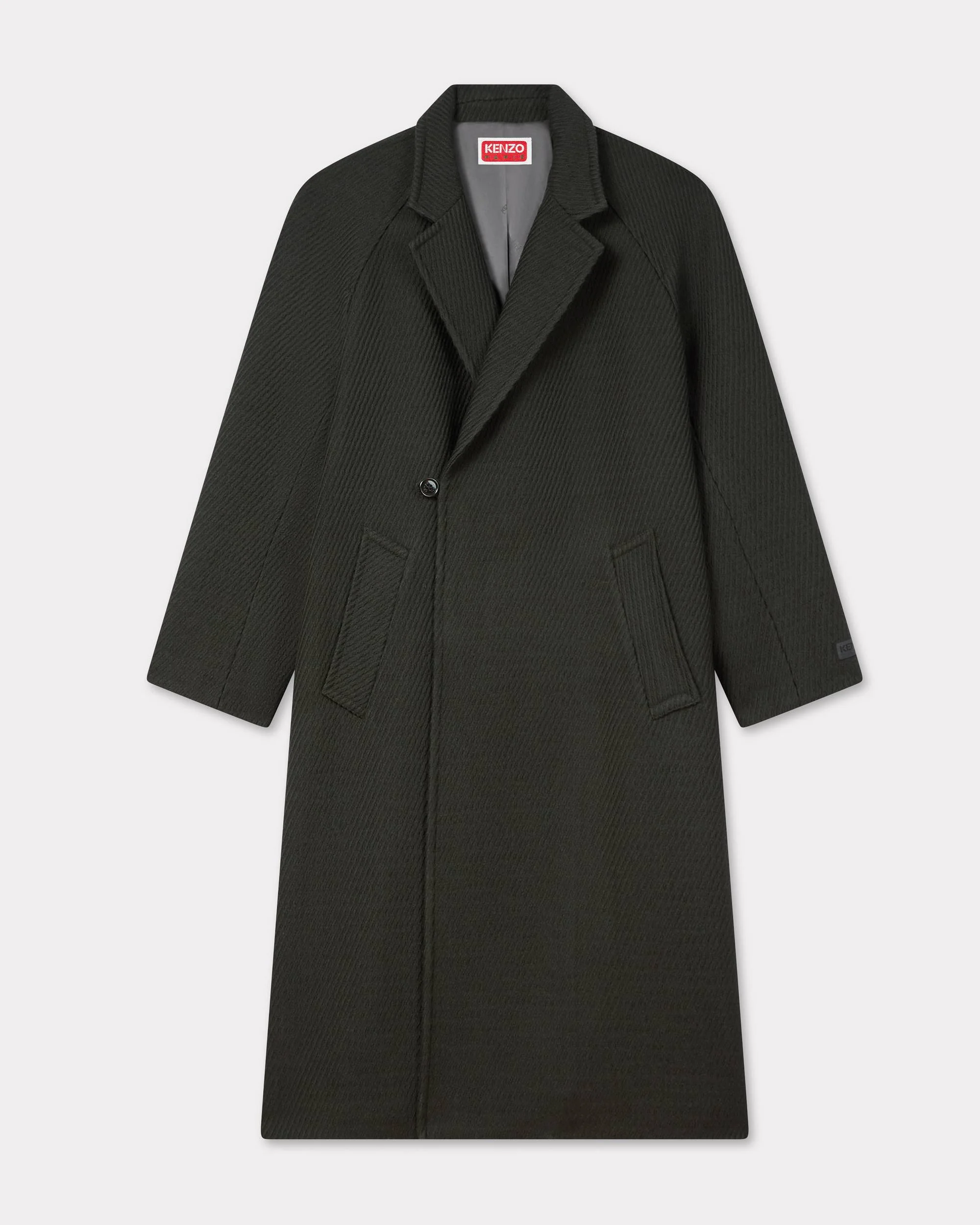 Wrap coat. Virgin wool and nylon. Half lined. Two side pockets. One inside pocket. 'KENZO Paris' label on the cuff. Product Reference: FF65MA0529PM.51 SIZE & FIT The male model is 185 cm tall and is wearing size M. Back length at 126 cm. Oversize fit. The fit of this product is oversized. For a more fitted look, we recommend choosing one size smaller than your usual size. COMPOSITION & CARE Made in Romania 94% virgin wool, 6% polyamide Do not bleach Mild professional dry-cleaning in: hydrocarbons Iron at low temperature Line drying in the shade Do not tumble dry Do not wash