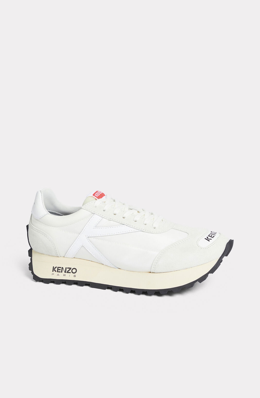These trainers have taken the KENZOSMILE logo to adorn their toe. Blending retro style with up-to-date fashion, they feature trendy thick soles. The letter K on each side adds a touch of originality. Nylon and suede trainers. KENZO logo on the front. KENZO Paris label on front of the tongue. KENZO and Paris logos on the back. KENZO Paris logo printed on the sole. Leather K patch on sides. Notched sole. Lace fastening. SIZE & FIT Sole thickness: 4 cm. These trainers fit normal sizes, choose your usual shoe size. For half sizes, choose the larger size. COMPOSITION & CARE Made in Portugal 100% polyamide