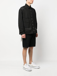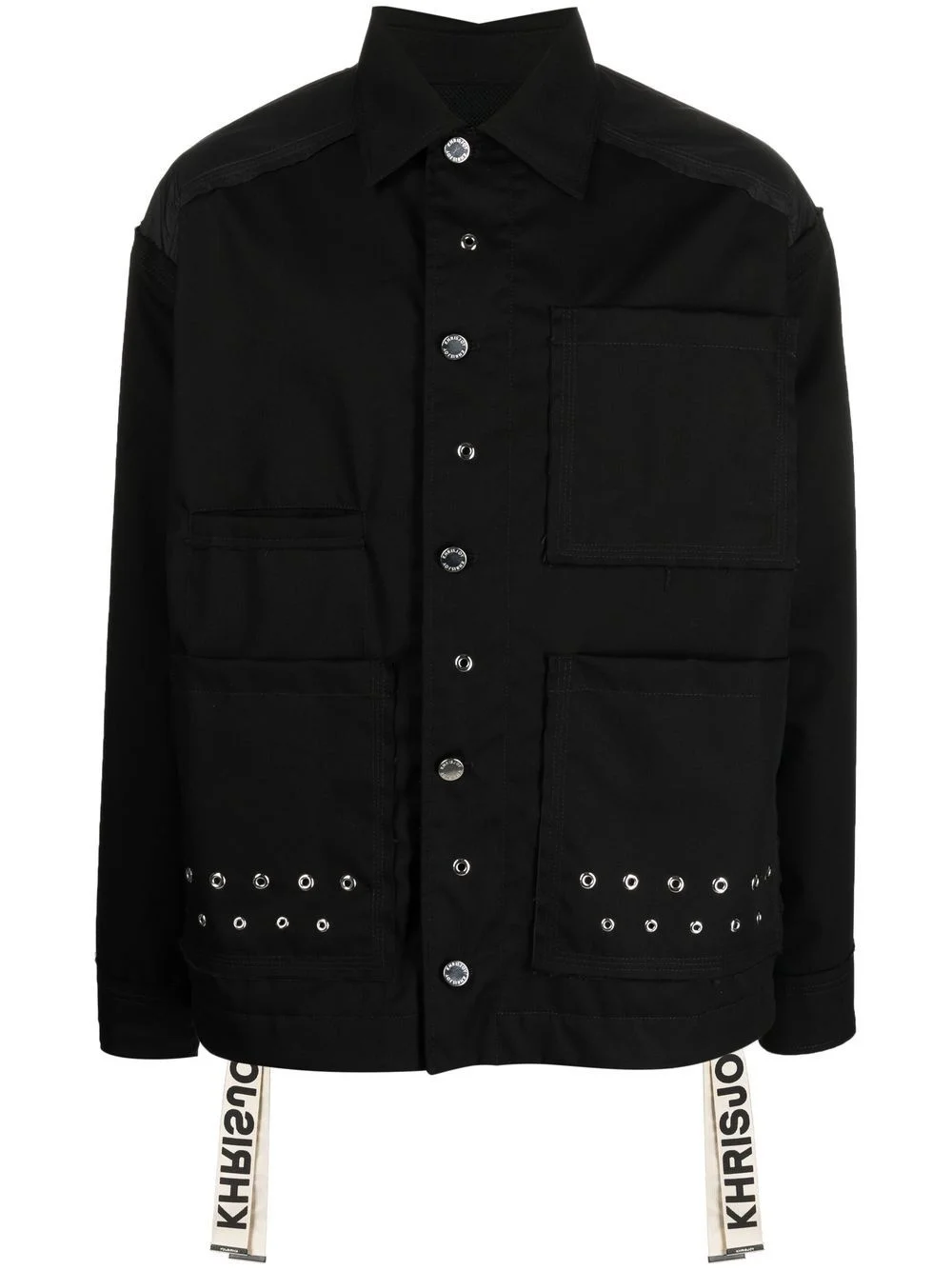 eyelet-embellished military jacket black metal eyelet detailing cutaway collar long sleeves buttoned-cuff sleeves button fastening multiple patch pockets Made in Italy Composition Lining: Polyamide 100% Outer: Polyamide 100%, Polyester 65%, Cotton 35% SIZE & FIT Model measurements Height 6 ft 1 in(1.85 m) Bust/Chest 35.82 in(91 cm) Hips 37.79 in(96 cm) Waist 29.13 in(74 cm) FittingInformation This piece fits true to size. We recommend you get your regular size Cut for a loose fit Made with a mid-weight non-stretch fabric