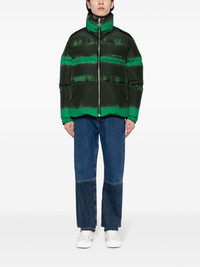 faded-effect puffer jacket Highlights - Grass green - Down-feather filling - Padded design - Faded effect - Logo print at the chest - Funnel neck - Front zip fastening - Two press-stud fastening side pockets - Long sleeves - Elasticated cuffs - Press-stud fastening cuffs - Straight hem Made in Italy Composition Filling: Down 80%, Feather 20% Front: Polyester 100% Lining: Polyester 100% Outer: Polyester 100% SIZE & FIT Model measurements Height 6 ft 2 in(1.87 m) Bust/Chest 33.07 in(84 cm) Hips 35.43 in(90 cm) Waist 26.77 in(68 cm) FittingInformation Designed to be unstructured, offering a loose fit throughout Made from a padded non-stretch fabric, giving it no natural elasticity This piece fits true to size – take your usual size Washing instructions Hand Wash