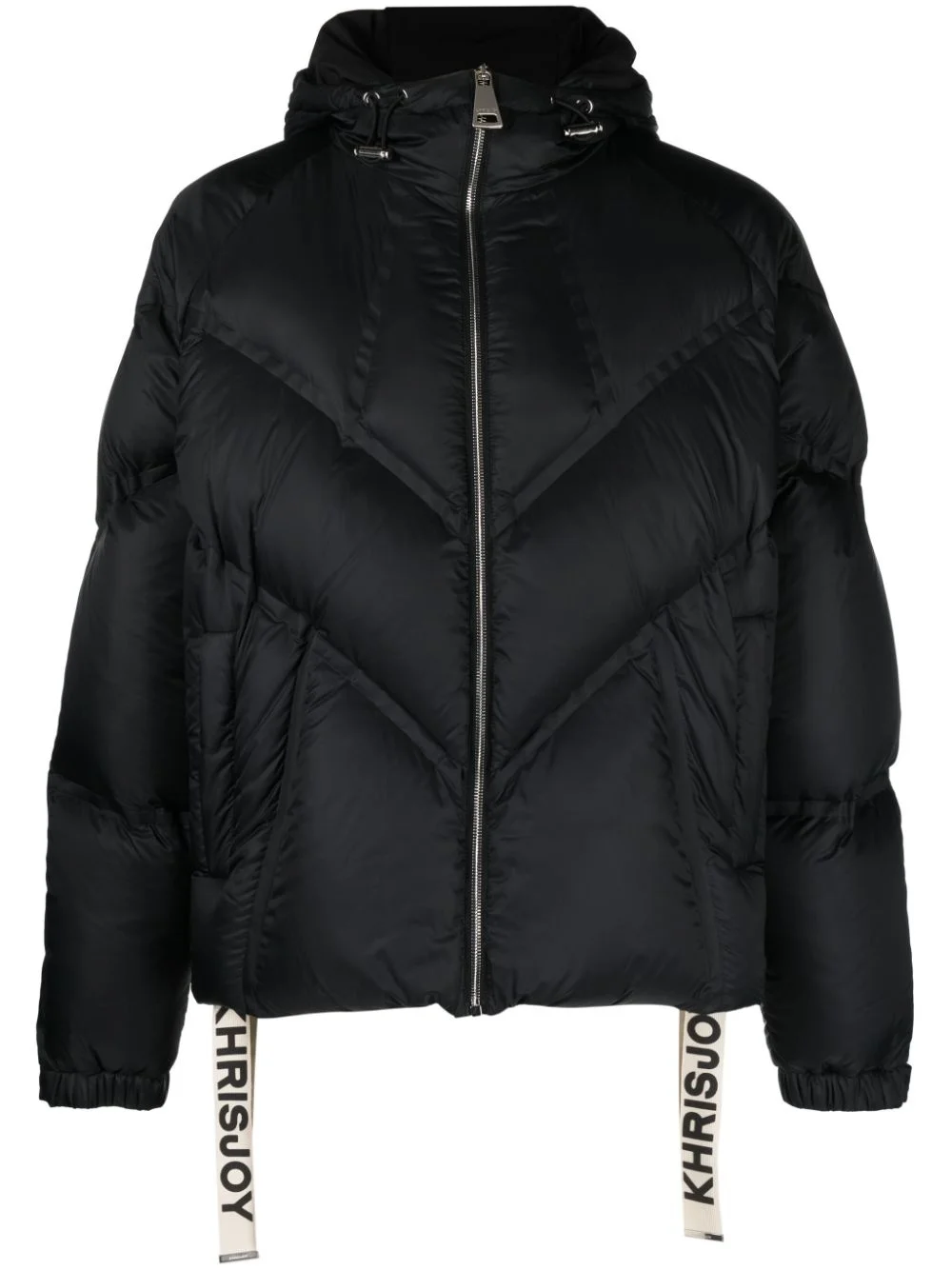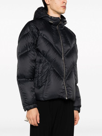 hooded padded jacket Highlights - Black - Feather down - Padded design - Drawstring hood - Front zip fastening - Long sleeves - Two side slit pockets - Straight hem Made in Italy Composition Lining: Polyester 100%, Down 90%, Feather 10% Outer: Polyamide 100% SIZE & FIT Model measurements Height 6 ft 2 in(1.87 m) Bust/Chest 36.41 in(92.5 cm) Hips 35.43 in(90 cm) Waist 29.52 in(75 cm) FittingInformation Designed to be unstructured, offering a loose fit throughout The internal drawstring at the hem allows for fitted preferences Made from a padded non-stretch fabric, giving it no natural elasticity This piece fits true to size – take your usual size Washing instructions Hand Wash