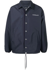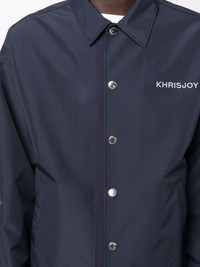 logo-embroidered shirt jacket Navy blue logo-embroidered shirt jacket from Khrisjoy featuring embroidered logo at the chest, classic collar, front button fastening, long sleeves, two side slit pockets and drawstring hem. Made in Italy Composition Polyester 100% SIZE & FIT Model measurements Height 6 ft 2 in(1.87 m) Bust/Chest 36.41 in(92.5 cm) Hips 37 in(94 cm) Waist 29.52 in(75 cm) FittingInformation This piece fits true to size. We recommend you get your regular size Cut for a loose fit Made with a mid-weight non-stretch fabric Washing instructions Dry Clean Only