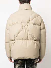 stitch-detail puffer jacket Highlights - Beige - Feather down - Padded design - Matte finish - Logo print at the chest - Logo-print lining - Stand-up collar - Front zip fastening - Long sleeves - Buttoned cuffs - Internal zip-fastening pocket - Two press-stud fastening side pockets - Straight hem Made in Italy Composition Outer: Cotton 54%, Polyamide 36% Lining: Polyester 100%, Feather Down 100% SIZE & FIT Model measurements Height 6 ft 2 in(1.89 m) Bust/Chest 38.97 in(99 cm) Hips 38.18 in(97 cm) Waist 32.28 in(82 cm) FittingInformation Designed to be unstructured, offering a loose fit throughout Made from a padded non-stretch fabric, giving it no natural elasticity This piece fits true to size – take your usual size Washing instructions Hand Wash