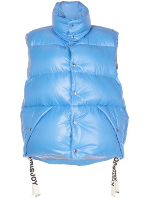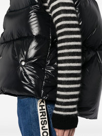 logo-tape shiny puffer gilet Highlights - Black - Down-feather filling - Padded design - Quilted - Logo-tape detailing - High-shine finish - Funnel neck - Front press-stud fastening - Two press-stud fastening side pockets - Sleeveless - High-low hem Made in Italy Composition Filling: Down 80%, Feather 20% Lining: Polyester 100% Outer: Polyamide 100% Front: Polyester 100% SIZE & FIT Model measurements Height 6 ft 2 in(1.87 m) Bust/Chest 33.07 in(84 cm) Hips 35.43 in(90 cm) Waist 26.77 in(68 cm) FittingInformation Designed to be unstructured, offering a loose fit throughout Made from a padded non-stretch fabric, giving it no natural elasticity This piece fits true to size – take your usual size
