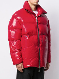 loose-fit padded coat Red loose-fit padded coat from Khrisjoy featuring a high standing collar, a branded rear patch, a front zip fastening, two front pockets and a padded interior. Made in Italy Composition Outer: Polyamide 100% Lining: Polyester 100%, Feather Down 100% SIZE & FIT Model measurements Height 6 ft 1 in(1.86 m) Bust/Chest 37.4 in(95 cm) Hips 37 in(94 cm) Waist 30.7 in(78 cm) FittingInformation This piece fits true to size. We recommend you get your regular size Cut for a loose fit Made with a mid-weight fabric Washing instructions Hand Wash