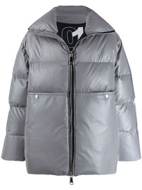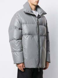 loose-fit padded coat Grey loose-fit padded coat from Khrisjoy featuring a high standing collar, a front zip fastening, a branded rear patch, two front pockets, a padded interior and a loose fit. Made in Italy Composition Lining: Feather Down 100%, Polyester 100% Outer: Polyamide 100% SIZE & FIT Model measurements Height 6 ft 1 in(1.86 m) Bust/Chest 37.4 in(95 cm) Hips 37 in(94 cm) Waist 30.7 in(78 cm) FittingInformation This piece fits true to size. We recommend you get your regular size Cut for a loose fit Made with a mid-weight fabric