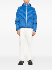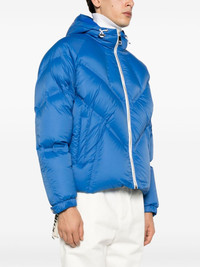 quilted hooded jacket Highlights - Royal blue - Feather down - Quilted - Drawstring hood - Front zip fastening - Long sleeves - Two side slit pockets - Straight hem Made in Italy Composition Lining: Feather Down 100%, Polyester 100% Outer: Polyamide 100% SIZE & FIT Model measurements Height 6 ft 2 in(1.87 m) Bust/Chest 36.41 in(92.5 cm) Hips 35.43 in(90 cm) Waist 29.52 in(75 cm) FittingInformation Designed to be unstructured, offering a loose fit throughout The internal drawstring at the hem allows for fitted preferences Made from a padded non-stretch fabric, giving it no natural elasticity This piece fits true to size – take your usual size Washing instructions Hand Wash