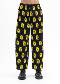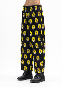 'Who Killed Bambi' pleated loose fit pants in black, from KIDILL x Jamie Reid. All-over multicoloured print. Tonal stitching throughout. Oversized fit 100% Polyester Made in Japan Model is wearing size 46 Model is 6’ (183 cm), 125 pounds (56 kg), usually wears M in tops. A size 30 in denim and 46 in trousers. Size 10 in shoes. *FINAL SALE*