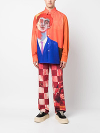 chess patchwork cotton corduroy trousers Highlights - Bright red - Cotton blend - Patchwork detailing - Concealed fly and button fastening - Belt loops - Two diagonal pockets to the sides - Two rear button-fastening jetted pockets - Straight leg Imported Composition Lining: Polyester 100% Outer: Cotton 100% SIZE & FIT Model measurements Height 6 ft 1 in(1.86 m) Bust/Chest 37.4 in(95 cm) Hips 34.64 in(88 cm) Waist 29.13 in(74 cm)