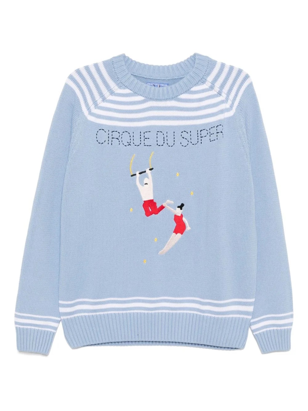 Cirque Du jumper Highlights - Sky blue - Crew neck - Ribbed cuffs and hem - Jacquard Imported Composition Cotton 100% SIZE & FIT Model measurements Height 6 ft 2 in(1.87 m) Bust/Chest 33.07 in(84 cm) Hips 35.43 in(90 cm) Waist 26.77 in(68 cm) FittingInformation Designed to be unstructured, offering a loose fit throughout Made with a midweight knit, this piece offers some stretch Washing instructions Machine Wash