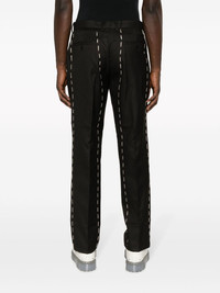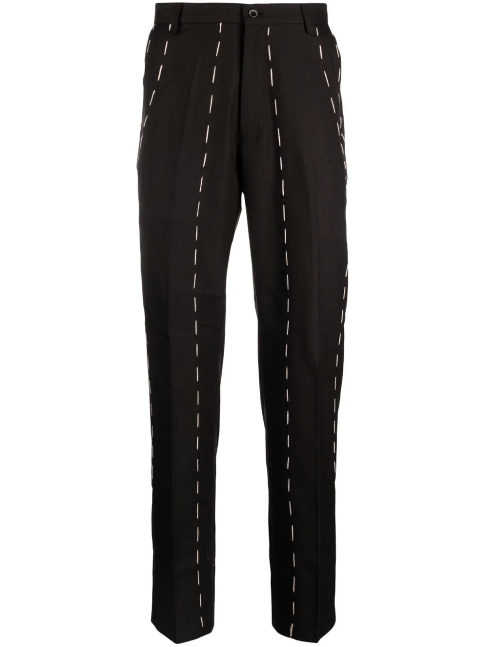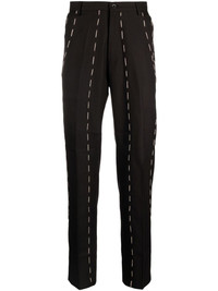contrast-stitching straight-leg trousers Highlights - Black - Contrast stitching - Belt loops - Front button and zip fastening - Mid-rise - Straight leg - Two side inset pockets - Two rear welt pockets Imported Composition Polyester 70%, Rayon 28%, Spandex/Elastane 2% SIZE & FIT Model measurements Height 6 ft 0 in(1.84 m) Bust/Chest 35.82 in(91 cm) Hips 37 in(94 cm) Waist 28.34 in(72 cm) Measurement FRONT RISE 10 in(25.4 cm) INSIDE LEG 30 in(76.2 cm) BACK RISE 12.51 in(31.8 cm) HIPS 37 in(94 cm) Hem Width 15 in(38.1 cm) WAIST 32 in(81.3 cm) FittingInformation Designed for a straight-leg, allowing for an unrestricted and comfortable fit over the leg Made from a midweight fabric This piece fits true to size – take your usual size Washing instructions Dry Clean Only