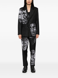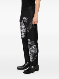 faux-pearl embellishment straight leg trousers Highlights - Black - Front button and zip fastening - Belt loops - Two side slash pockets - Two rear welt pockets - Faux-pearl embellishment - Straight leg Imported Composition Polyester 70%, Rayon 28%, Spandex/Elastane 2% SIZE & FIT Model measurements Height 6 ft 1 in(1.85 m) Bust/Chest 35.43 in(90 cm) Hips 36.22 in(92 cm) Waist 28.74 in(73 cm) FittingInformation Designed for a slim tapered leg, offering a close fit that sits just away from the leg with a closer fit towards the ankle Made from a midweight stretch fabric, this piece offers elasticity and flexibility when worn