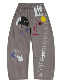 From a Place I've Never Been baggy jeans Highlights - Grey - Graphic print - Five pockets - Belt loops - Rear logo patch - Baggy - Multiple all over embellishments consisting of screenprint, embroidery, chain stitch embroidery - Signature embroidery in pocket Imported Composition Calf Leather 100%, Cotton 83%, Polyester 12%, Viscose 5% Washing instructions Read Manufacturer Guidelines