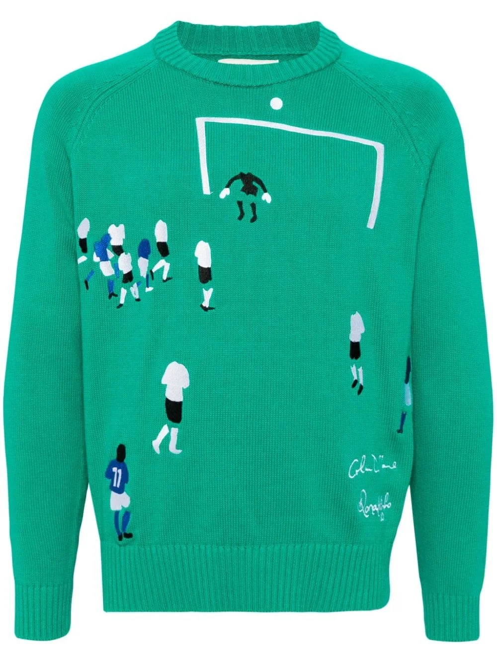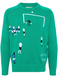 graphic embroidery jumper Highlights - Green/multicolour - Cotton - Knitted construction - Crew neck - Graphic embroidery to the front - Ribbed cuffs and hem - Long raglan sleeves Imported Composition Cotton 100% SIZE & FIT Model measurements Height 6 ft 1 in(1.85 m) Bust/Chest 35.43 in(90 cm) Hips 36.22 in(92 cm) Waist 28.74 in(73 cm) Measurement CHEST 41.73 in(106 cm) LENGTH 23.62 in(60 cm) FittingInformation Designed for a regular fit, offering a comfortable loose fit throughout the body The ribbed hem offers a close, comfortable fit Made with a midweight knit, this piece offers some stretch