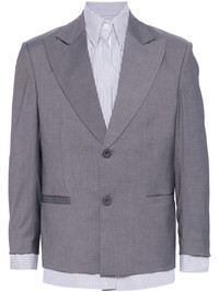 single-breasted layered blazer Highlights - Grey/blue/white - Cotton - Layered design - Notched lapels - Long sleeves - Two front welt pockets - Front button fastening Imported Composition Outer: Polyester 70%, Rayon 28%, Spandex/Elastane 2% Lining: Polyester 100% Trims: Cotton 100%