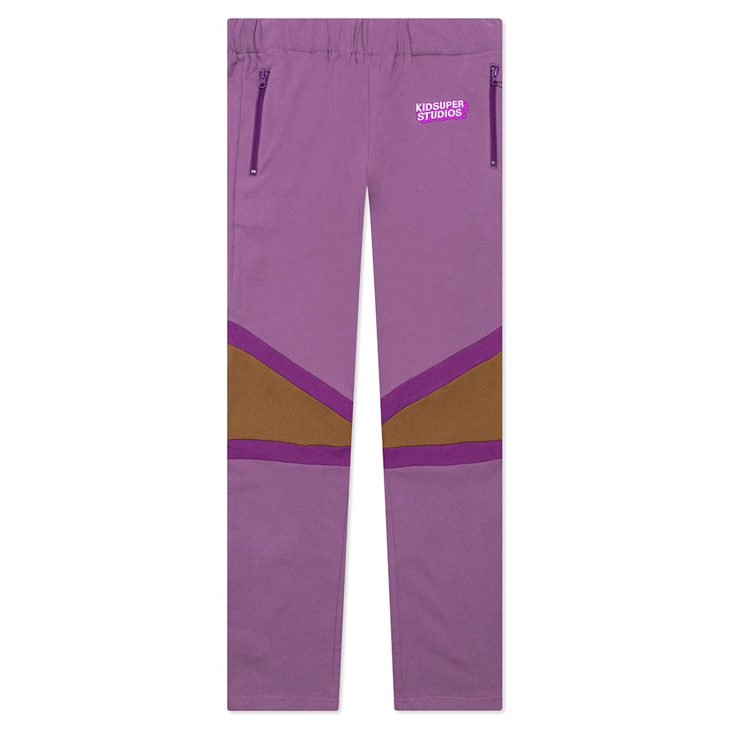 French terry sweatpants. · Paneled construction · Elasticized waistband · Three-pocket styling Supplier color: Brown/Purple