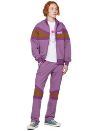 French terry track jacket. · Paneled construction · Stripes at rib knit stand collar, hem, and cuffs · Logo embroidered at chest · Zip pockets Supplier color: Brown/Purple