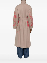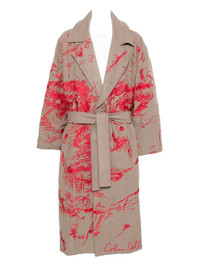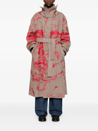 brown all-over print belted waist notched lapel button fastening long sleeves - Color: BROWN - Made in: Bangladesh - Designer Style ID: OW-18 HATCHED CREAM Composition and care Outer Composition Polyester: 40.0%, Lining Composition Polyester: 100.0%, Outer Composition Wool: 60.0%