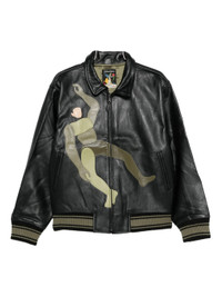 black calf leather ribbed hem ribbed cuffs front zip fastening point collar - Color: BLACK - Made in: Bangladesh - Designer Style ID: OW-36 FALLING BLACK Composition and care Calf Leather: 100.0%
