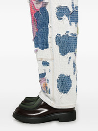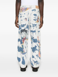 distressed trousers Highlights - Light blue - Concealed fly and button fastening - Belt loops - Classic five pockets - Face print Imported Composition Cotton 100% SIZE & FIT Model measurements Height 6 ft 0 in(1.84 m) Bust/Chest 35.82 in(91 cm) Hips 37 in(94 cm) Waist 28.34 in(72 cm) FittingInformation Designed for a straight-leg, allowing for an unrestricted and comfortable fit over the leg Sturdy and hard-wearing, this denim piece offers no stretch Washing instructions Machine Wash
