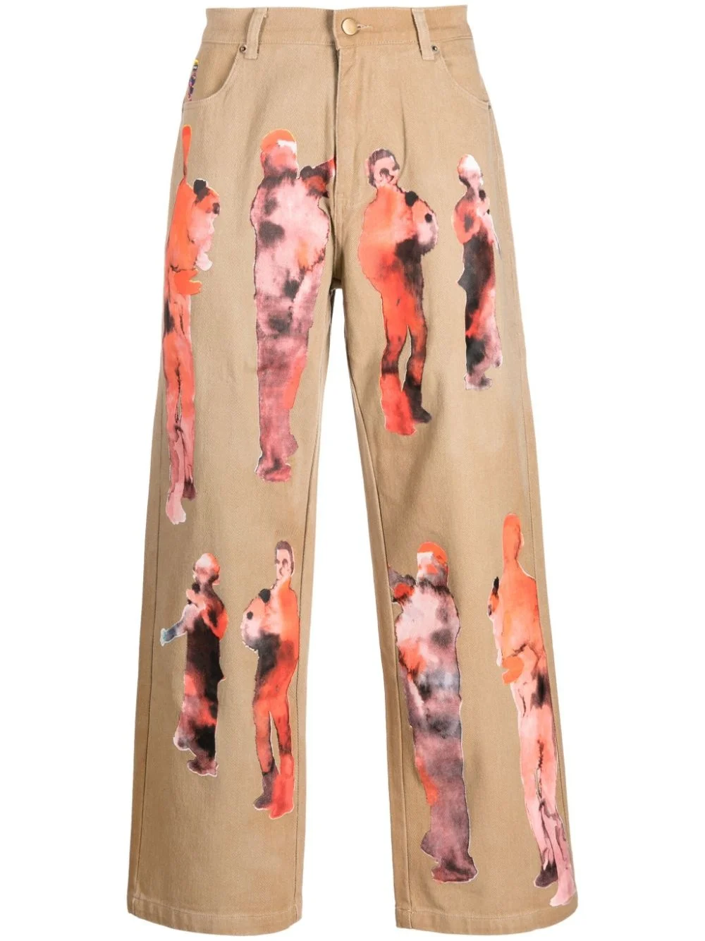 graphic-print cotton straight-leg jeans Highlights - Beige/multicolour - Cotton - Graphic print to the front - Logo patch to the rear - Patch detail - Belt loops - Concealed fly and button fastening - Two side inset pockets - Two rear patch pockets - Straight leg Imported Composition Cotton 100% SIZE & FIT Model measurements Height 6 ft 0 in(1.84 m) Bust/Chest 35.82 in(91 cm) Hips 37 in(94 cm) Waist 28.34 in(72 cm) FittingInformation Designed with a straight leg, these jeans allow for an unrestricted and comfortable fit over the leg Sturdy and hard-wearing, this denim piece offers no stretch This piece fits true to size – take your usual size Washing instructions Hand Wash